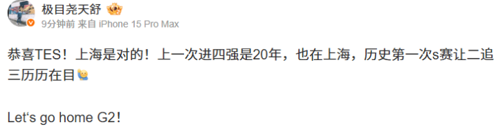恭喜TES!上海是对的!上一次进四强是20年,也在上海,历史第一次s赛让二追三历历在目[举手]